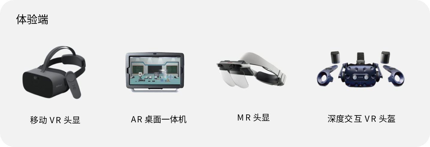 便携式VR一体机、深度交互PC VR头盔、教学控制端PAD、VR设备充电车、网络设备、PC VR体验一体机等
